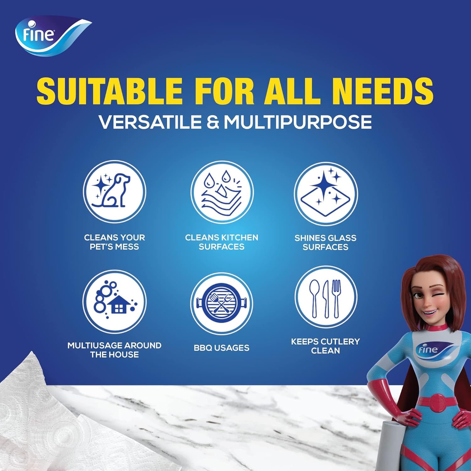 Fine Kitchen Super Towel Pro, 6 Rolls 60 Sheets x 3 Ply Paper Tissue
