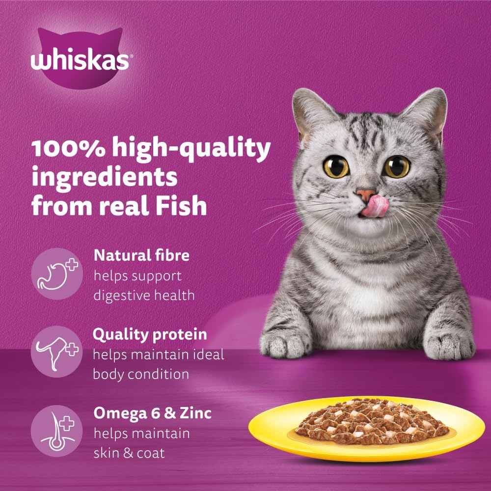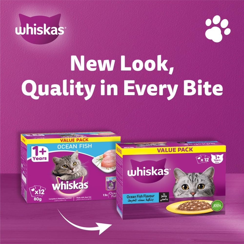 Whiskas Oceanfish in Jelly Wet Cat Food Pack of 12x80g, Wet Food for 1+ Years Adult Cats, Complete and Balanced Nutrition